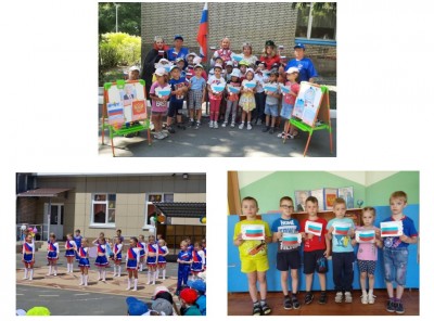 Российский флаг – священной веры флаг. Российский флаг – наш символ и богатство. Российский флаг – к победам смелый шаг! 22 августа вся наша страна празднует День Государственного флага Российской Федерации. В МБДОУ ДС № 28г. Кузнецка прошли мероприятия, посвященные этому событию. С интересом дети слушали рассказ о флаге, который существует уже более 300 лет. На протяжении веков он постоянно изменялся - от различных вариаций бело-сине-красного до сочетания других цветов. Говорили о значении цветов современного «триколора», беседовали о стране, читали стихи о России, рассматривали и выкладывали Российский флаг. Просмотрев презентацию, дети узнали, почему граждане России гордятся Государственными гербом, флагом и гимном. Государственный флаг всегда поднимается во время торжественных мероприятий, праздников, и в это время звучит «Гимн Российской Федерации». С большим желанием обучающиеся рисовали флаг мелками на асфальте, выполняли аппликацию «Гордо веет флаг державный». А также дети приняли участие в летнем квесте ко Дню флага «Как Алёнушка флаг искала», где обучающиеся выполняли игровые задания, танцевальные и песенные номера, флеш-моб. Члены ПО 42 «Единая Россия» обратили внимание участников праздника к многовековой непрерывной истории России, к достижениям и победам наших предков, которые завещали нам беречь и защищать Родину. Детские сердца наполнились чувством радости, гордости за нашу Великую Державу – Россию!